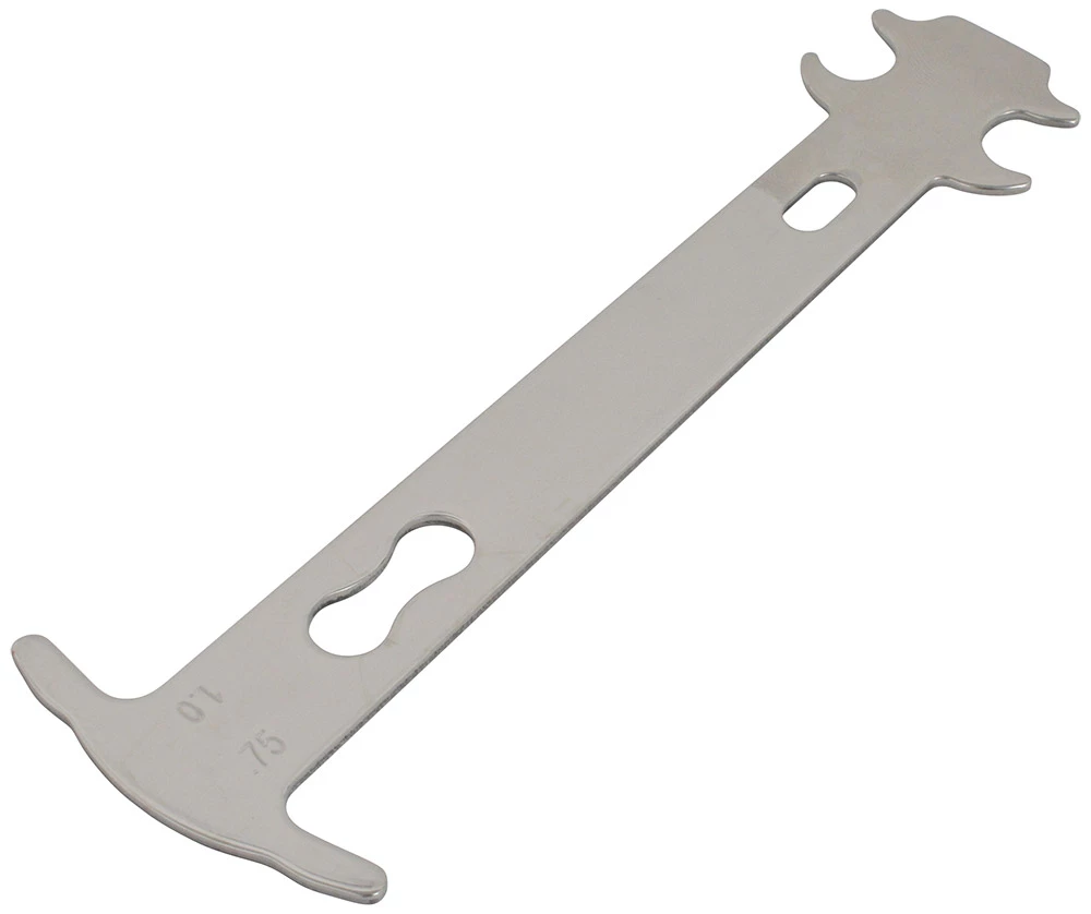 La jauge de chaîne Radon Pro en acier inoxydable te permet de mesurer facilement et rapidement l’usure de ta chaîne.