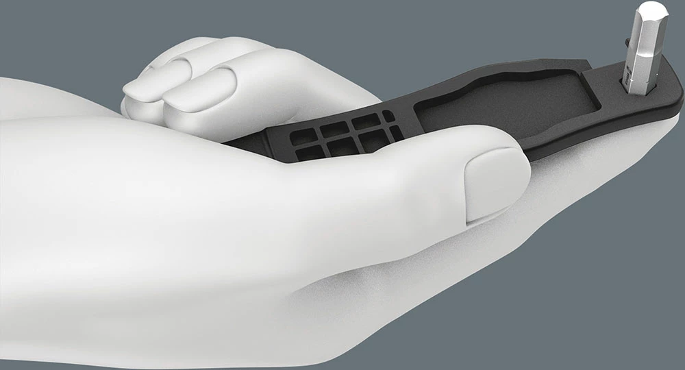 Le fonctionnement des gros profils est possible grâce au montage sur ressort des petites pointes. L’embout dispose d’un emmanchement hexagonal 1/4″ (série Wera 1), il est donc aussi utilisable avec par ex. les cliquets à embouts et manches avec Rapidaptor.